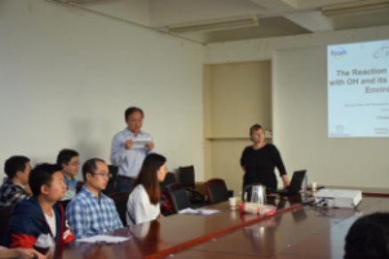 Christa教授在报告中关于过氧自由基反应动力学、激光光解腔衰荡光谱技术等方面做出了相关介绍。指出过氧自由基RO2是大气中的关键物质,它的相关反应对环境污染的影响。测定反应产物CH3O2+ OH的速率常数的结果以及专门用于测定可能的反应产物的产量及其对遥远环境的影响。