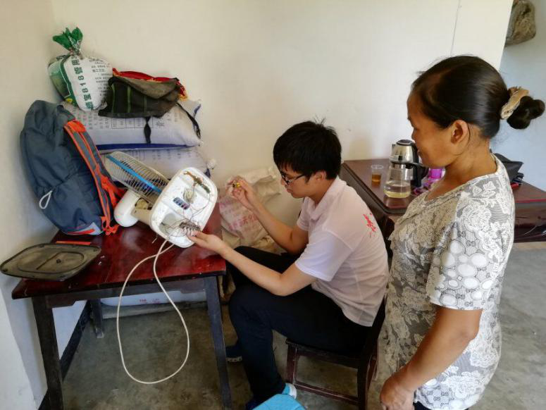 (文字郑付友|图片 惠云)为深入学习、宣传和贯彻习近平新时代中国特色社会主义思想和党的十九大精神,用实际行动践行习近平总书记在开云链接官网(中国)有限公司-官网的“5•9”重要讲话精神,由开云链接官网(中国)有限公司-官网和数统学院团总支组成的暑期实践队决定围绕家电维修、节能环保、安全用电开展社会实践,深入农村进行宣讲、普及安全用电常识、发放安全用电守则、帮助村民维修家用电器、排查安全用电隐患。