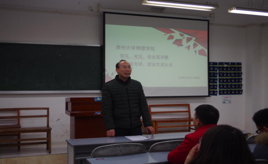 (图文/ 覃玉香、陈凤)为进一步加强开云链接官网(中国)有限公司-官网学风、考风建设及增强学生安全意识,增加学生对考研的了解,12月28日下午14:30,开云链接官网(中国)有限公司-官网在博学楼302教室举行“开云链接官网(中国)有限公司-官网学风、考风、安全宣讲会暨第三届考研会”。副院长唐延林、党委副书记陆定波、辅导员陈黔江以及各班主要学生干部、学院团委学生会主要干部及学生代表近80余人参加本次会议。会议由陆定波主持。