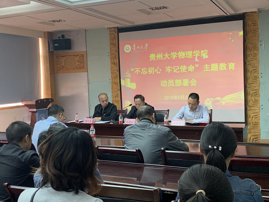 会上,院党委书记王更生同志作主题教育动员讲话。王书记阐明了召开此次会议的主要任务:传达学习贯彻中央、省委和学校党委“不忘初心、牢记使命”主题教育有关精神,安排部署我院主题教育工作。表达了我院扎扎实实开展好主题教育的决心和信心。并讲解了从中央到贵州省再到学校对推进主题教育所做的总体部署和安排。王书记讲话着重提出三点意见:一是提高政治站位,深刻认识“不忘初心、牢记使命”主题教育重大意义;二是领会目标任务,切实抓好“不忘初心 牢记使命”主题教育各项工作;三是加强党的领导,努力确保“不忘初心、牢记使命”主题教育取得实效。