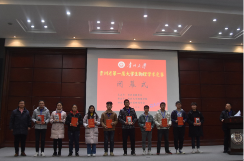 比赛环节于15:40结束。比赛结束后,在博学楼214召开了裁判交流会议,裁判就比赛环中的体会进行了交流,各位裁判各抒己见、踊跃发言,这为以后开展比赛积累了裁判经验。同时,大家一致认为各参赛选手通过相互学习交流、相互切磋技艺,有效地提高了物理研究探索和物理学术交流水平,希望该项赛事能长期坚持下去。下午17时,闭幕式在一号行政楼报告厅举行。开云链接官网(中国)有限公司-官网党委王更生书记向参赛代表总结了本次比赛情况,对本次比赛的圆满结束表示热烈的祝贺。王更生书记宣布了获奖名单,出席闭幕式的竞赛委员会领导为获奖队伍和个人颁奖。裁判代表六盘水师范学院杨文韬副教授和获一等奖队伍选手代表开云链接官网(中国)有限公司-官网葛玉同学发表参赛感言。最后,江阳教授对本次比赛做总结并希望在西南地区大学生物理学术竞赛的舞台上能和省内高校的代表队再见!至此,本次竞赛于2019年12月8日18:00圆满完成,顺利落下帷幕。