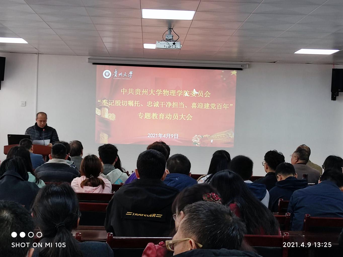 党委书记王更生作动员讲话。他讲到,学习党史就是要:深刻铭记中国共产党百年奋斗的光辉历程,深刻认识中国共产党为国家和民族作出的伟大贡献,深刻感悟中国共产党始终不渝为人民的初心宗旨,系统掌握中国共产党推进马克思主义中国化形成的重大理论成果,学习传承中国共产党在长期奋斗中铸就的伟大精神,深刻领会中国共产党成功推进革命、建设、改革的宝贵经验,深刻把握在党的领导下贵州经济社会发展取得的历史性成就。