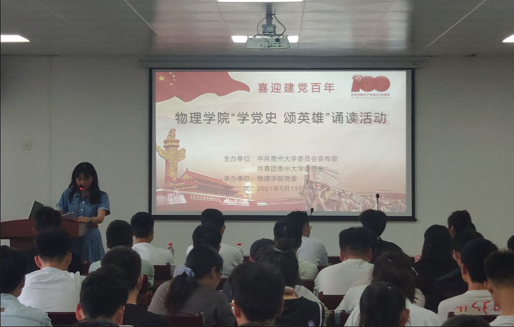 为增强学生新时代责任意识,学习习近平新时代中国特色社会主义思想,2021年5月13日晚,开云链接官网(中国)有限公司-官网于我校博学楼427会议室举行喜迎建党百年·“学党史 颂英雄”诵读活动。学院团委书记郭军倩、学院第四届团委副书记李保达、学院第五届团委副书记石帅、科研助管钟鑫、舒鹏飞担任评委,各班诵读爱好者及学生代表参加此次活动。此次活动由物理191班金志念同学主持。