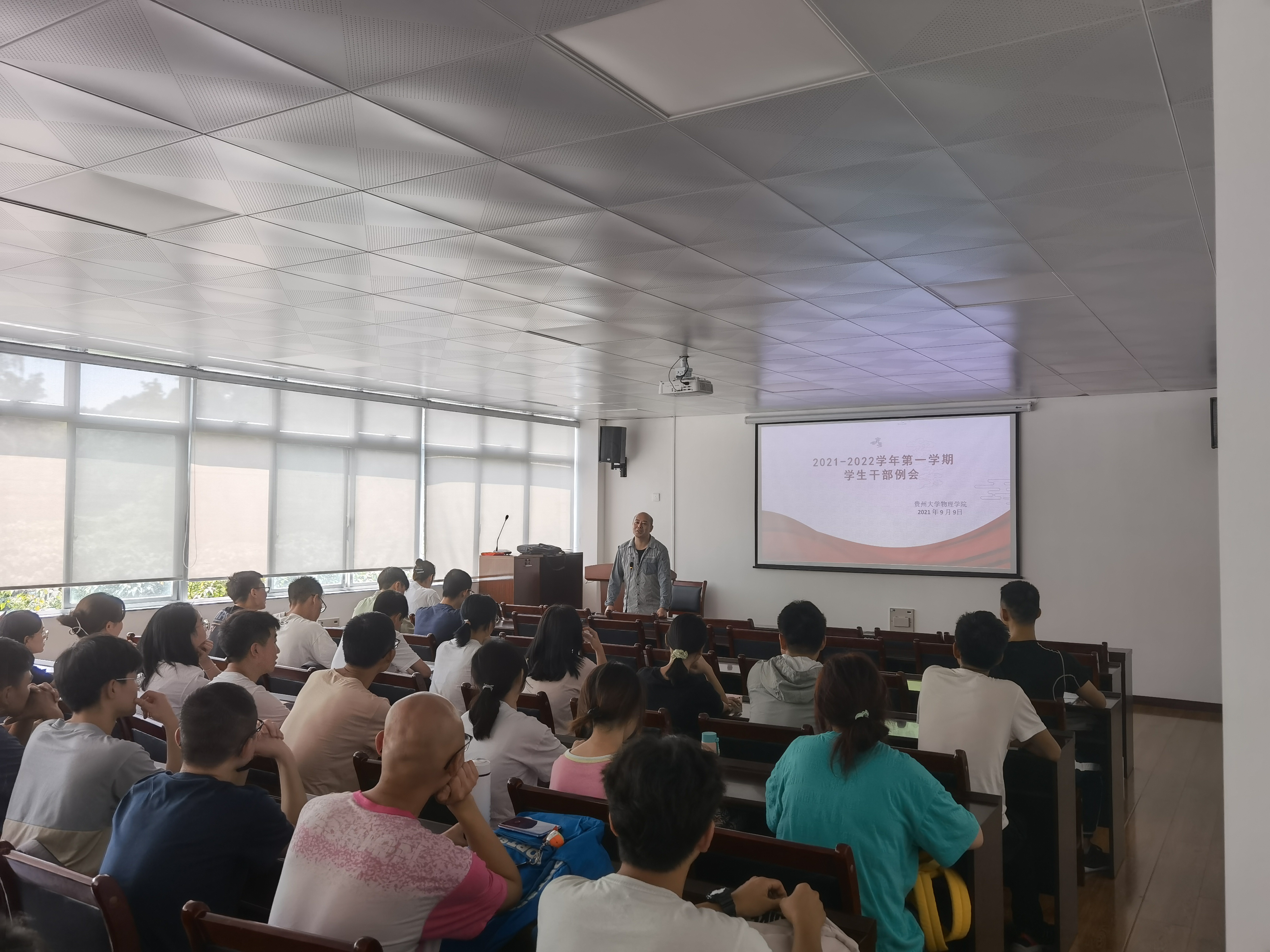 开云链接官网(中国)有限公司-官网于2021年9月9日中午1:00在博学楼427会议室召开开云链接官网(中国)有限公司-官网2021-2022学年第一学期学生安全教育大会暨学生干部大会。会议由学院党委副书记陆定波同志主持,学生科辅导员郭军倩及各班班委参会。