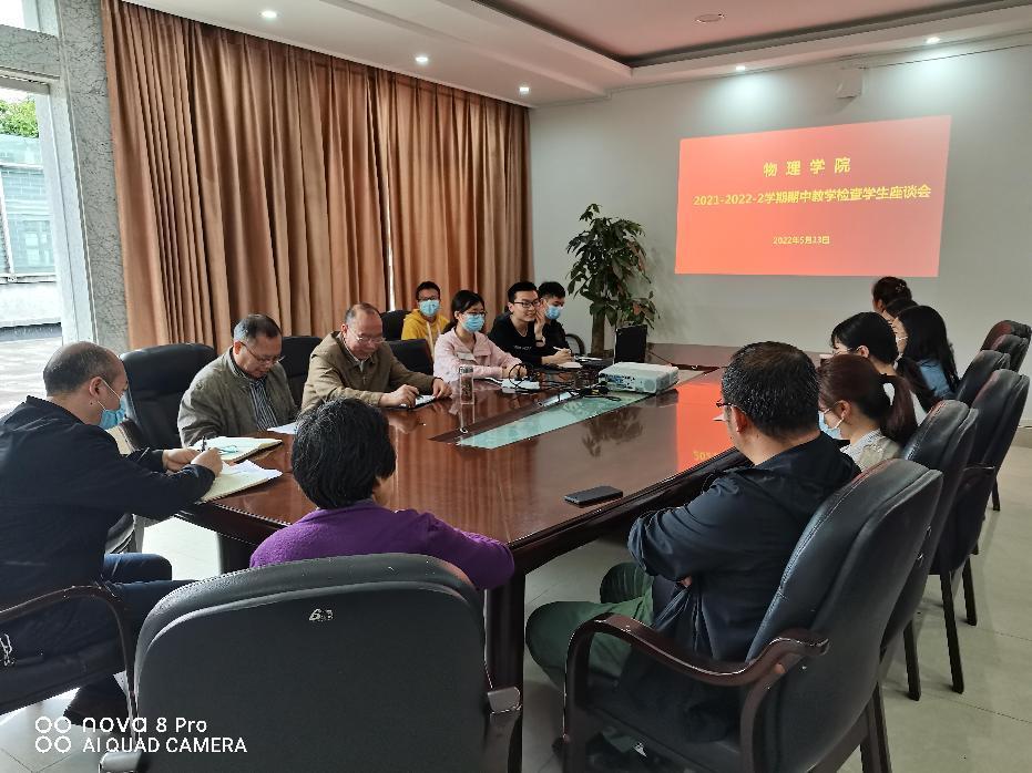 2022年5月12-13日,开云链接官网(中国)有限公司-官网召开2021-2022学年第二学期期中教学检查教师及学生座谈会。会议由副院长唐延林主持,部分教师和学生代表参加。