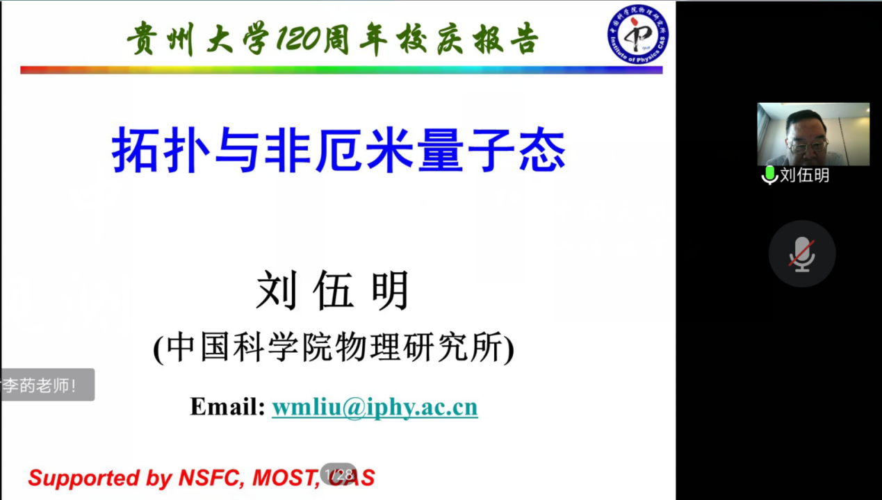 刘伍明,男,1994年获中国科学院金属研究所博士学位,并获1994年中国科学院院长奖学金特别奖。1994年至2002年,先后在中国科学院物理所、理论物理所、美国 Texas 大学、美国 Delaware 大学作博士后和工作。2002年至今,任中国科学院物理所研究员、博士生导师、国家973计划首席科学家、国家重点研发计划项目首席科学家。研究领域为原子分子物理、光物理和凝聚态物理中由自旋-轨道耦合、非厄米、强关联、无序效应等诱导的新奇量子现象。发展可积模型、量子场论等解析方法和团簇动力学平均场方法等数值方法,研究具有自旋-轨道耦合、非厄米、强关联、无序效应等量子多体系统的基态、激发态、拓扑态的精确解及其奇异性质,例如拓扑超固态、Mott 绝缘态、自旋液体态等新物态及其拓扑量子相变等。已在《科学引文索引》(SCI)收录的刊物上发表论文435篇,其中美国物理学会主办的 Physical Review Letters 16 篇,Physical Review A/B/D/E 180 篇,得到了诺贝尔物理学奖获得者Eric A. CornellWolfgang Ketterle教授等人的正面引用并被写入其综述文章中,被SCI他引 16500 次。曾获中国人民解放军科技进步奖一等奖、北京市科学技术奖一等奖等10项奖励。