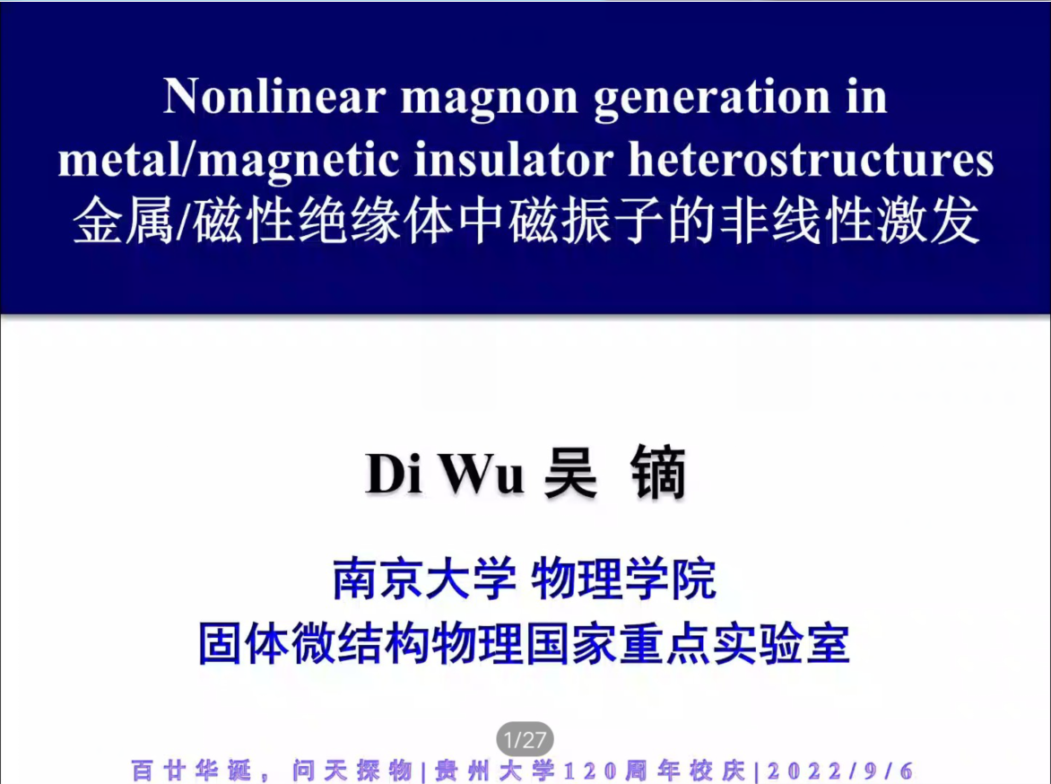 报告题目:Nonlinear magnon generation in metal/magnetic insulator heterostructures