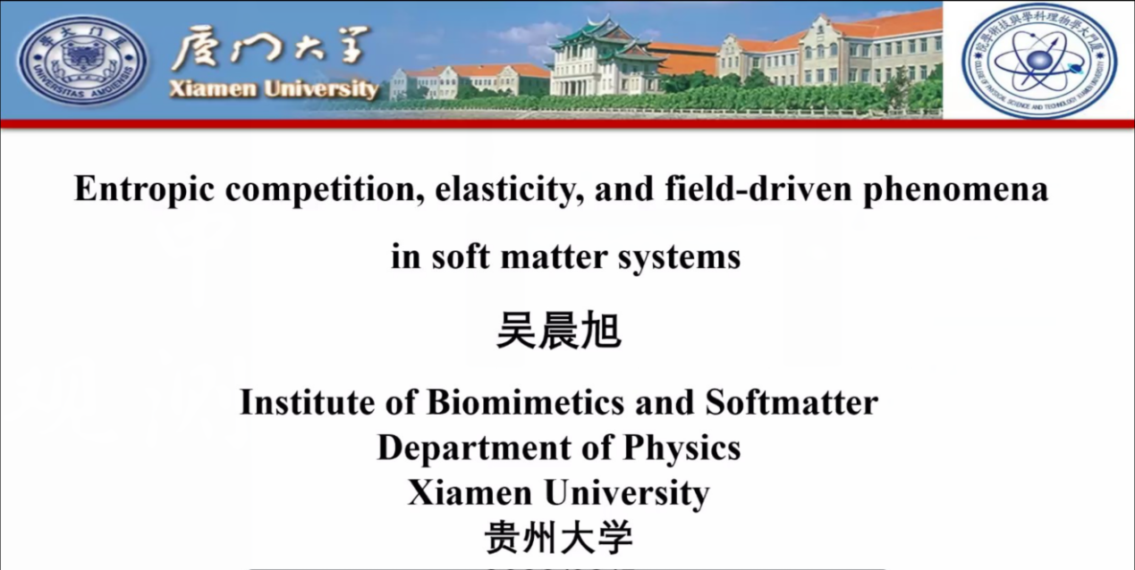 吴晨旭教授首先介绍了什么是软物质,以及自己在软物质方向上的研究内容,最后向同学们介绍了关于软物质研究领域的研究热点及其前景。