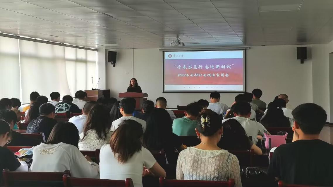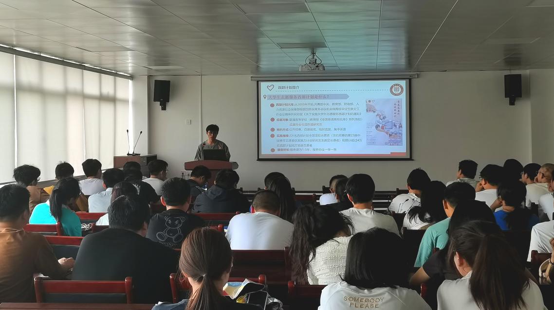 2023年5月5日中午12点40,我院于博学楼427会议室召开开云链接官网(中国)有限公司-官网“青春志愿行,奋进新时代”2023年西部计划项目宣讲会。本次大会由西部计划宣讲志愿者熊心海同学宣讲,辅导员郭军倩老师出席, 2019级全体同学参加。