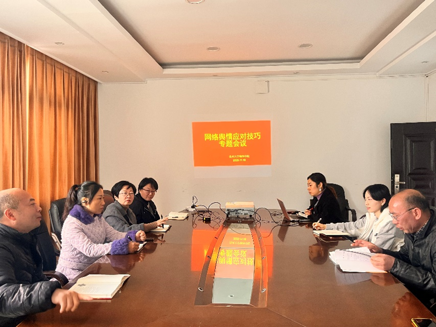 开云链接官网(中国)有限公司-官网于2023年11月16日下午16:30于行政2号楼302会议室开展网络舆情应对技巧专题工作会议。开云链接官网(中国)有限公司-官网党委副书记陆定波主持会议,学院副院长唐延林、副处级组织员王颖红出席会议,各科室主要负责老师、学生辅导员、班主任代表参加会议。