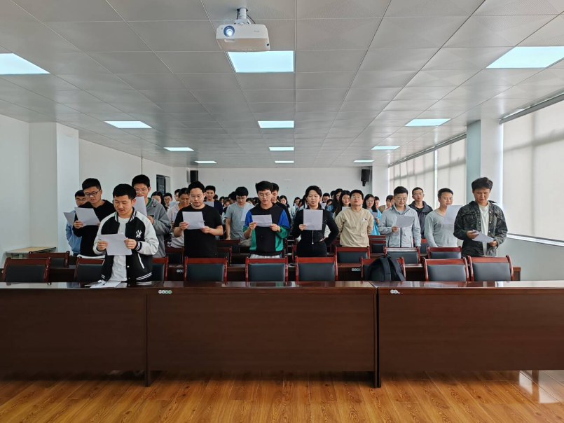 时代各有不同,青春一脉相承。在重温习近平总书记的重要讲话精神后,第一党支部副书记李保达带领全体党员同志集体诵读李大钊《青春》节选。同学们激昂澎湃齐声朗诵着:“青年锐进之子,尘尘刹刹,立于旋转簸扬循环无端之大洪流中,宜有江流不转之精神,屹然独立之气魄……以宇宙之生涯为自我之生涯,以宇宙之青春为自我之青春。宇宙无尽,即青春无尽,即自我无尽。此之精神,即生死肉骨,回天再造之精神也。此之气魄,即慷慨悲壮,拔山盖世之气魄也……”表达了同学们坚定不移听党话、跟党走,争做有理想、敢担当、能吃苦、肯奋斗的新时代好青年的决心,展现了奋力书写为中国式现代化挺膺担当的青春篇章。