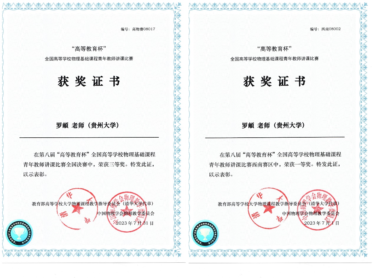 作为一名青年教师,近五年来,承担了校级公共基础课《大学物理》和物理专业基础课《力学》两门课程的教学任务。其间,参加了两届开云链接官网(中国)有限公司-官网青年教师教学比赛,并于2023年夏参加了全国高等学校物理基础课程青年教师讲课比赛,从最初贵州赛区胜出进入地区赛,又在西南赛区的角逐中有幸以一等奖的身份进入国赛,最终获得全国决赛三等奖。对于战绩,虽仍有遗憾,但回想自己从最初站上讲台时的胆怯与青涩,到如今的沉着与笃定,从最初对教学的茫然和误解,到如今躬身力行的课程建设,收获了蜕变与成长,现将内心的感悟分享如下。