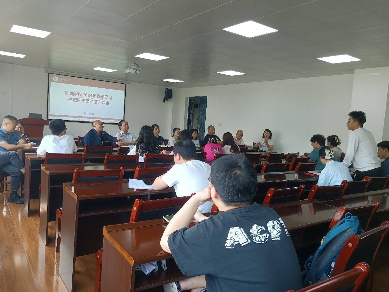 陆定波介绍了本次座谈会的目的,希望听取同学们对学院教学、管理等各方面的意见和建议,以改进教学质量和管理水平,鼓励同学们积极提出自己的建议和生活中遇到的问题,大家一起交流改进。