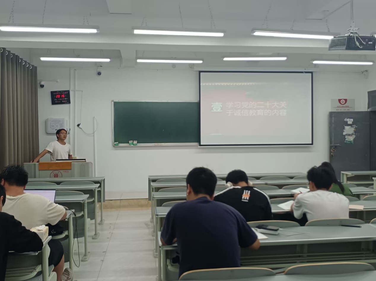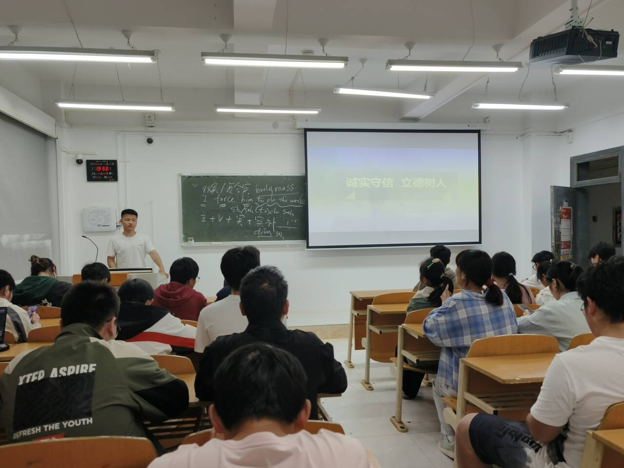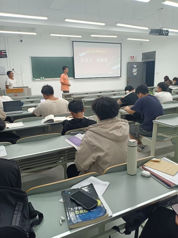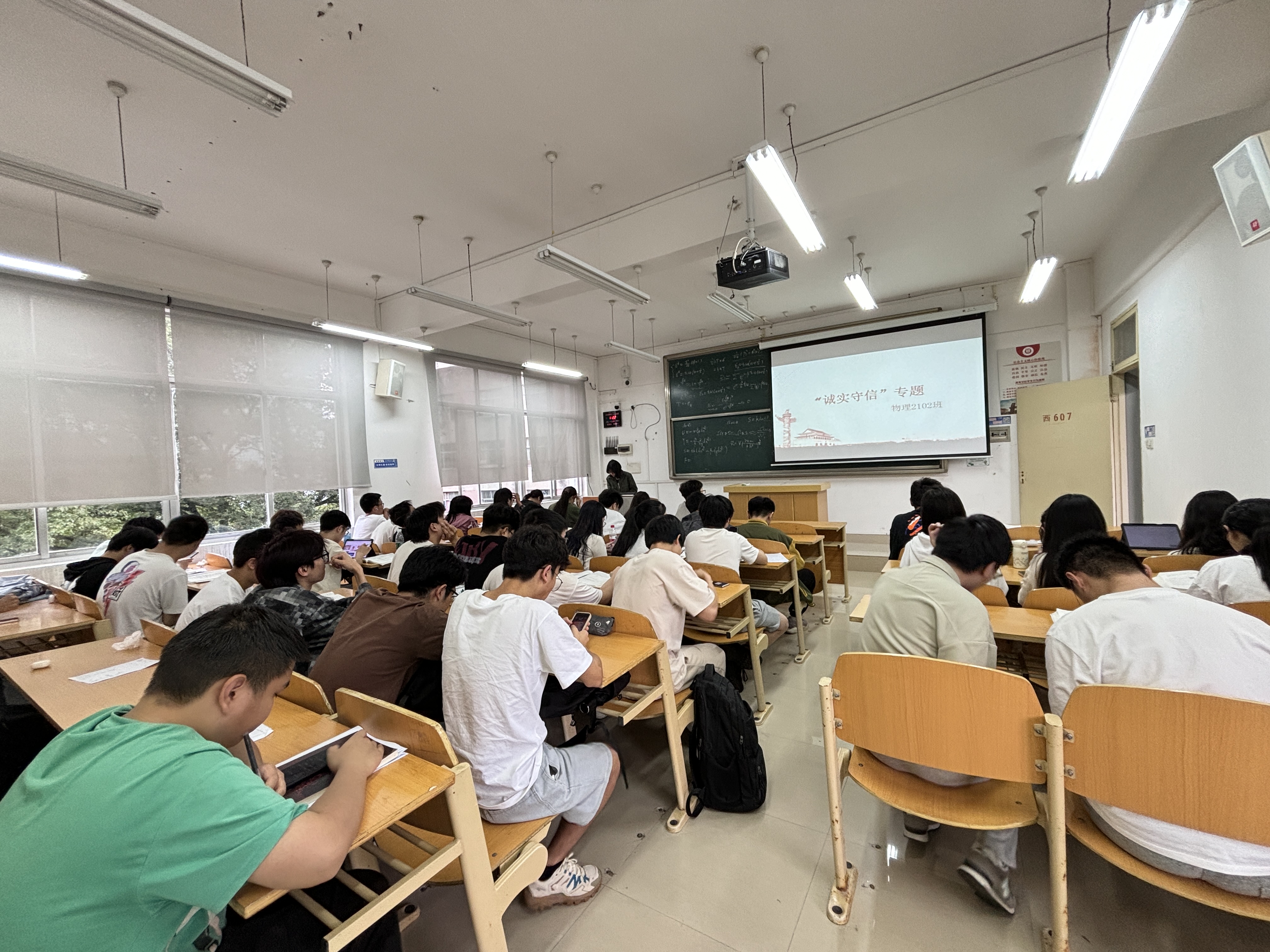 物理2202班于2024年5月30号在博学楼401教室开展了以“诚实守信筑基石,立德树人共前行”为主题的班会。