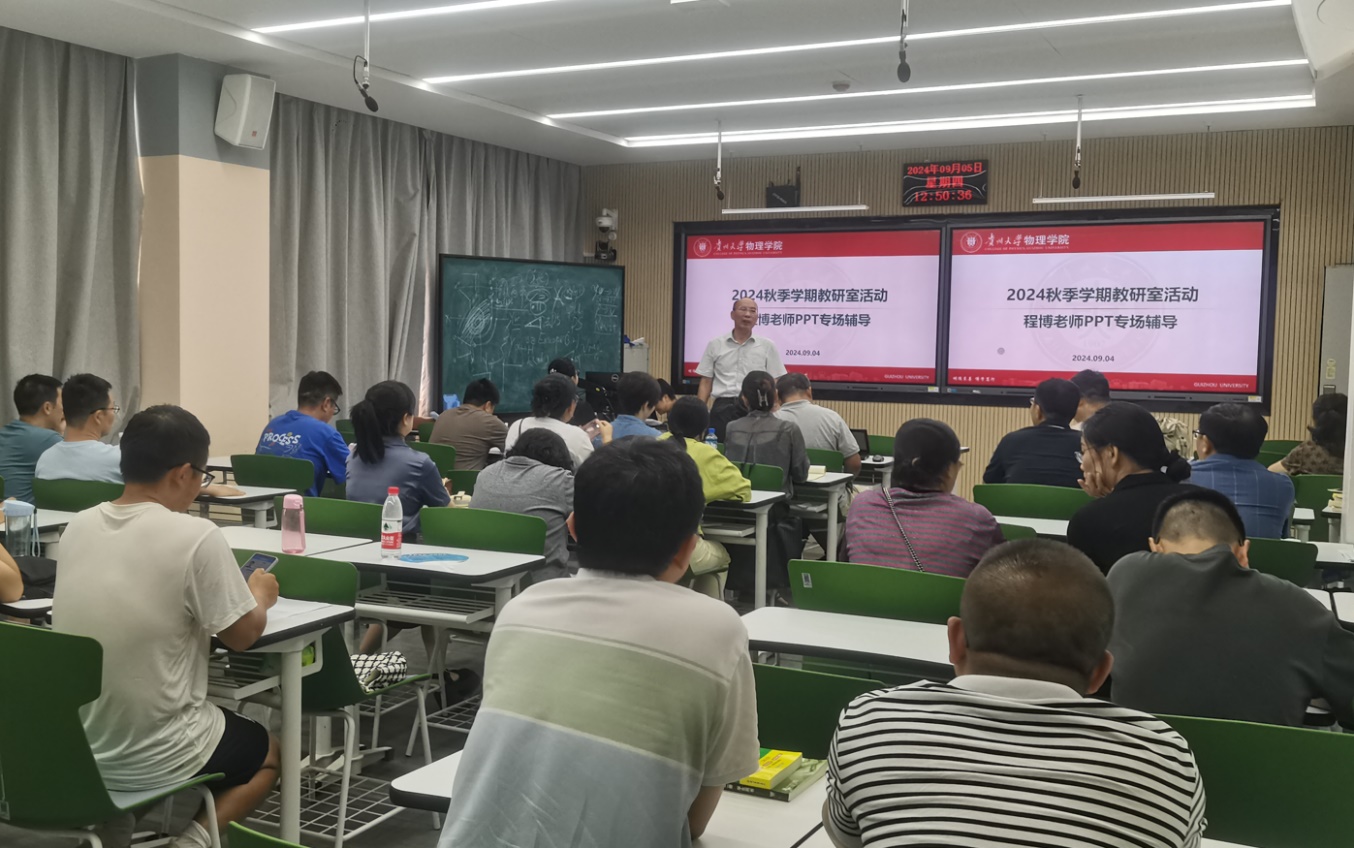 新学期伊始,为进一步提升课堂教学质量,充分发挥高质量PPT在教学中的辅助作用,我院特邀工程训练中心教师、首届全国高校教师工程创客教学大赛特等奖获得者程博,于2024年9月4日下午在博学楼116教室,为学院全体教师带来了一场别开生面的PPT专场辅导。本次专场辅导由校教学督导团专家、开云链接官网(中国)有限公司-官网原副院长唐延林教授主持。