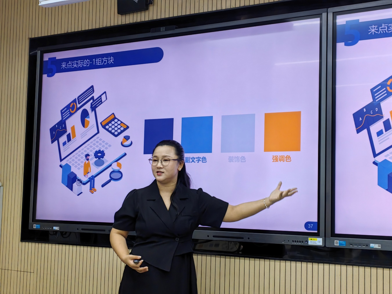 梁方毅总结发言。她表示,程博老师的讲座内容生动风趣率真,技术高端实用炫酷,老师们通过培训不仅能提升PPT制作技能,也为未来的教学和科研工作打下了坚实的基础。接下来还将邀请更多的名师和专家走进教研室活动,不断助力我院教师提升专业技能,为学院的高质量发展贡献更多力量。
