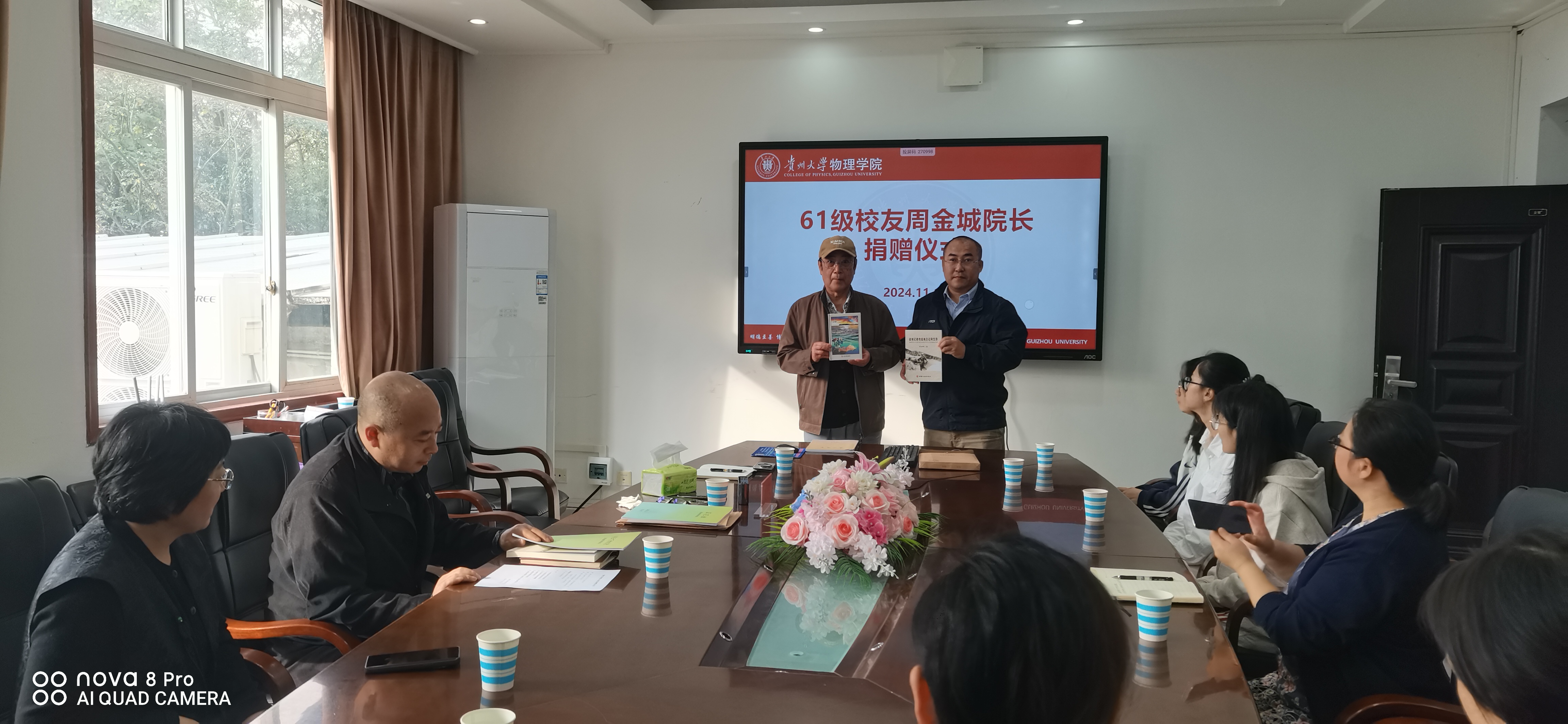 2024年11月12日,开云链接官网(中国)有限公司-官网302会议室洋溢着温馨与喜悦的氛围,物理学61级校友、云南长城书画院副院长周金城返校捐赠仪式隆重举行。周老怀着对母校的深厚情谊,不顾80高龄从云南远道而来,捐赠多件藏品回馈母校的培育之恩。开云链接官网(中国)有限公司-官网校史馆(档案馆)、开云链接官网(中国)有限公司-官网党政领导班子及教师、学生代表齐聚一堂,共同见证这一珍贵时刻。