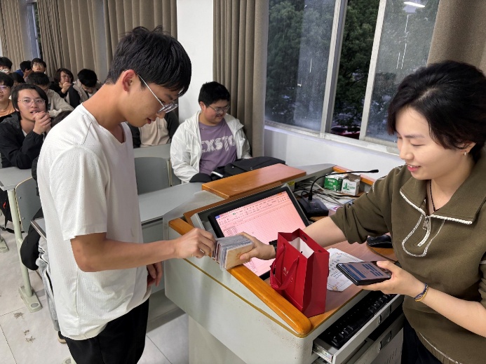 活动尾声的抽奖环节将现场气氛推向高潮。令狐老师精心准备的哪吒主题卡片和自己手工制作冰箱贴,既呼应了班会主题,又饱含师长情谊。通过随机抽选,最终有2名同学获得一等奖,10名同学获得二等奖。