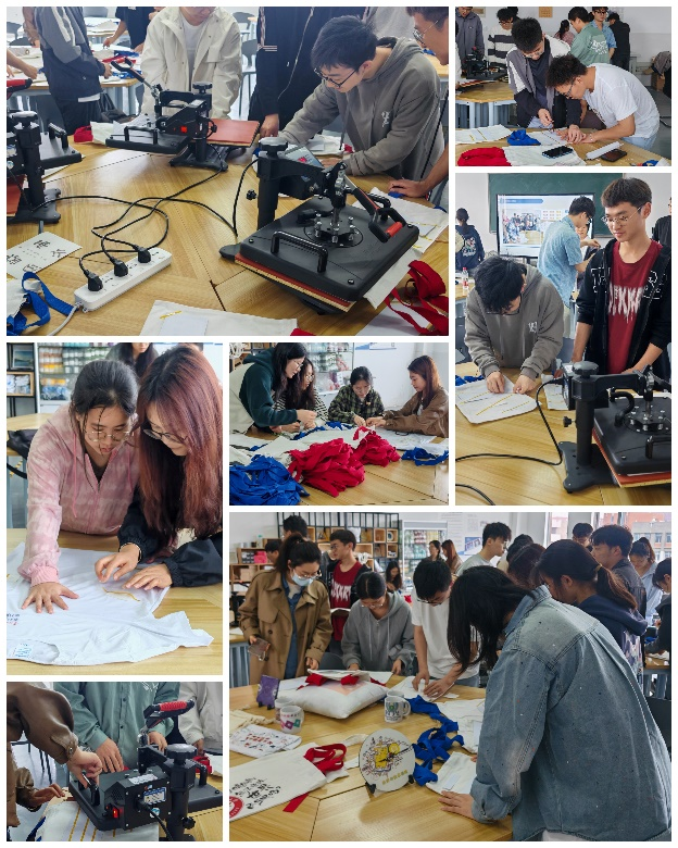 活动伊始,工程训练中心程博老师采用“理论演示+实操指导”双轨教学模式,深入讲解热转印技术的工业应用场景与安全规范。参训学员通过“集体作品+个性创作”的阶梯式实践,先后完成团队纪念T恤制作与个性化帆布包设计两大任务。当印有全体成员姓名的定制T恤在高温压印下完美呈现,同学们直观感受到劳动创造价值的深刻内涵。