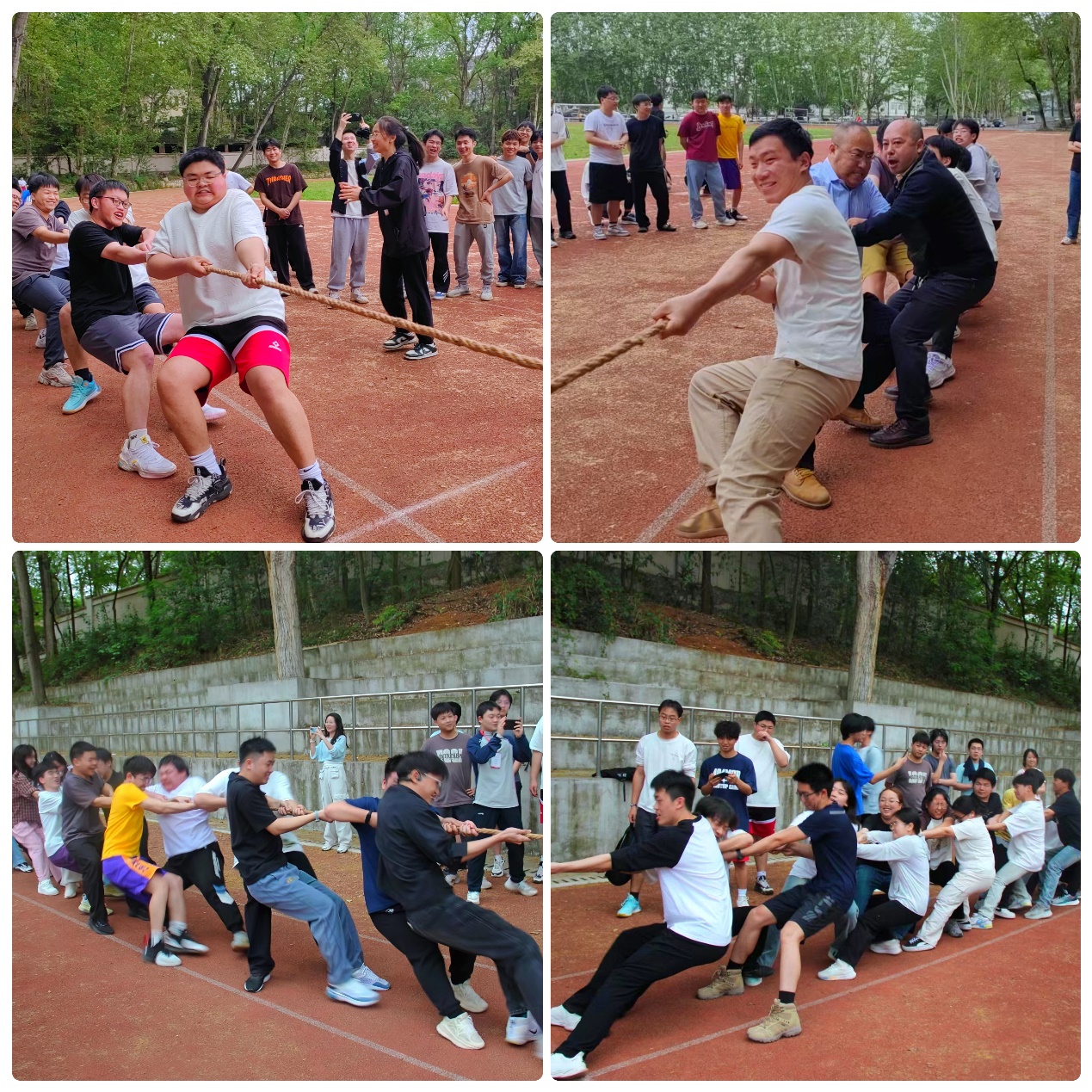 开幕式结束后,本科生2022级、2023级四个班级的拔河比赛为此次运动会拉开序幕,参赛人员紧握绳索、重心后倾,啦啦队的呐喊声此起彼伏,青春活力点燃全场,院领导陆定波、刘艳辉带头加入师生拔河友谊赛,更将此次比赛推向高潮。