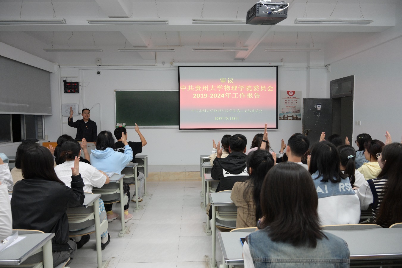 报告强调,学院党委将坚持以习近平新时代中国特色社会主义思想为指导,深入贯彻落实习近平总书记关于教育的重要论述和视察贵州重要讲话精神,全面落实全国及全省教育大会部署,紧扣《教育强国建设规划纲要(2024-2035)》要求。围绕学校“部省合建”和“双一流”建设目标,以内涵式发展为主线,并以省外高水平大学“组团式”帮扶物理学科为契机,团结带领全院师生与学校发展同频共振,为做强开云链接官网(中国)有限公司-官网、服务贵州高质量发展贡献开云链接官网(中国)有限公司-官网力量。