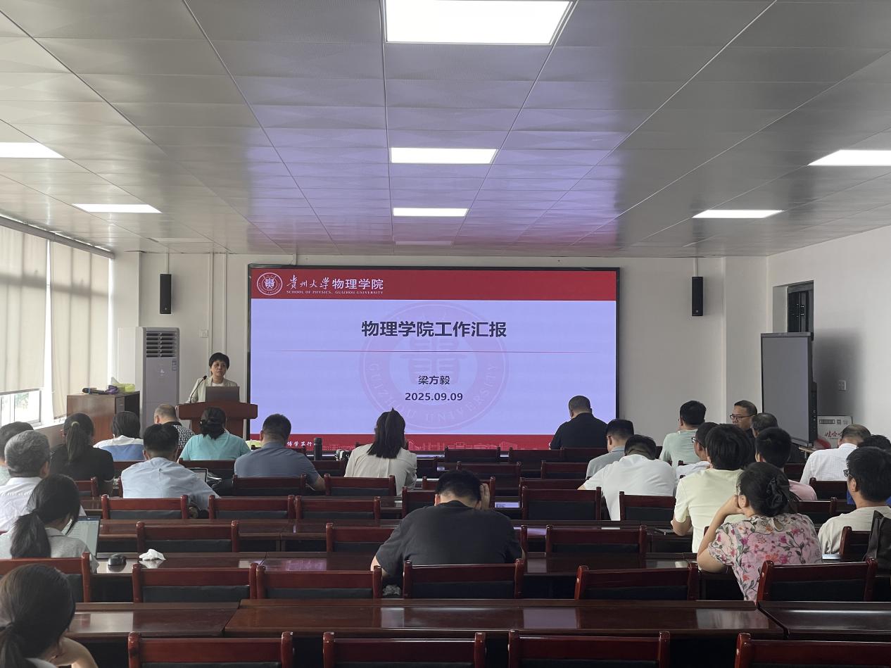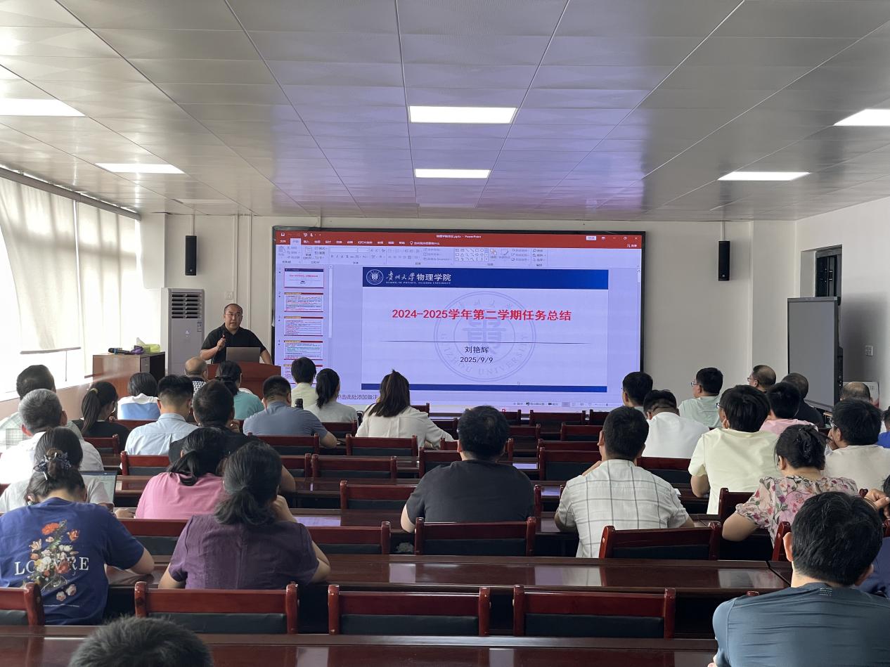 梁方毅书记系统总结了上半年党务、教学、科研、研究生就业及驻村等工作,并就组团式帮扶、教风学风建设、双创项目等工作进行部署,针对本科生出国深造及研究生就业率等薄弱环节提出具体改进措施。她充分肯定了教职工暑假期间“放假不停工、坚守一线谋发展”的奉献精神,祝贺物理学在软科中国大学专业排名中从前42%跃升至前31%,为学院未来发展注入了强劲动力,学院将以此为新起点,聚焦高水平成果产出和一流人才培养,巩固优势、补齐短板,全力推动学科建设再上新台阶。