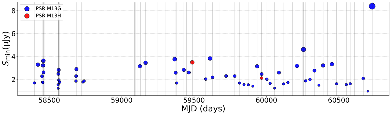 近日,开云链接官网(中国)有限公司-官网开云链接官网(中国)有限公司-官网与中国科学院国家天文台、上海天文台等多家单位合作,利用中国天眼——500米口径球面射电望远镜(FAST),在武仙座球状星团M13NGC 6205)中发现了两颗此前“隐藏”的毫秒脉冲双星M13GM13H。相关成果以 Illuminating Hidden Pulsars: Scintillation-enhanced Discovery of Two Binary Millisecond Pulsars in M13 with FAST 为题,发表在国际著名期刊 The Astrophysical Journal